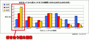 そのアンケートというのは、10代、20代、30代の女性合計約3,300人に対し、「付き合ってから初エッチまでの期間」を調べるという大規模調査でした。